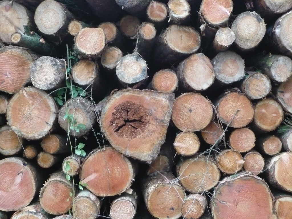 Follow the footpath to reach South Lodge on the far side of the field. Pass in front of the dwellings. Don’t follow the RHW to the right but turn left then right through a gate with a lovely latch to follow the footpath signposted for Worksop. The path runs through open woodland and then through a conifer plantation on the edge of the Manor Hills. Stacks of freshly cut timber lined the route. Emerge from the trees onto a straight, sandy track that points towards the grey pile of Worksop Manor in the distance.